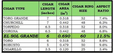 One of the most important things about smoking a cigar, is that you are able to enjoy the flavor of the burning tobacco. When tobacco burns, it generates smoke. With each puff, the smoke is drawn through the inside of the cigar and across the tobacco that has not yet been burned. Over time, this smoke will build up on the unburnt tobacco will begin to affect its flavor. To minimize this normal but unpleasant effect, El Sol cigars have the highest aspect ratio possible to reduce any negative impact on flavor. For this reason all El Sol cigars are only available in a Grande - 60 ring X 6 inch long cigar.